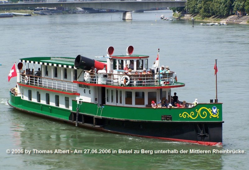 Name: "BASLERDYBLI", auch Name: "BASLER DYBLI" / Baujahr: 1980 / Bauwerft: Österreichische Schiffswerften AG in Linz-Korneuburg (Österreich) / Flagge: Schweiz / Länge: 35,50 m / Breite: 7,00 m / Tiefgang: 1,50 m / 140 Passagiere / Antrieb: 2 x GM-Diesel Typ 6-71 mit je 170 PS auf zwei Festpropeller / Eigner ~ Betreiber: Basler Personenschifffahrt , Basler Personenschiffahrts-Gesellschaft AG in Basel / Heimathafen: Basel / Fahrtgebiet: Rhein / Schiffs- oder Registriernummer: 7001250 / Bemerkung: Das Schiff wurde im Nostalgielook der Dampfschiffära gebaut, ist aber ein Motorschiff. Ausgestattet ist es mit dem Salon-Interieur des abgewrackten Dampfschiffes "PILATUS". Auf der Seite www.debinnenvaart.nl wird CSPL Lodenice in Chvaletice (Tschechien) als Bauwerft angegeben, dies ist aber in keiner anderen Quelle vermerkt. Thomas Albert