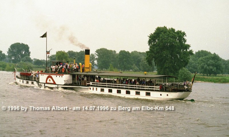 Name:  KAISER WILHELM   / Baujahr: 1900 (Stapellauf 20.5.1900) / Bauwerft: Dresdner Maschinenfabrik und Schiffswerft AG in Dresden-Neustadt (Deutschland) - Baunummer 565 / Flagge: Deutschland / Länge: 57,20 m / Breite: 4,48 m (Schiffsrumpf) , 8,38 m (Breite über Radkästen) / Tiefgang: 0,65 m (leer) , 0,93 m (beladen) / 350 Passagiere / Antrieb: Dampfmaschine (Liegende 2-Zylinder-Verbundmaschine der Dresdner Maschinenfabrik und Schiffswerft AG, Dresden-Neustadt von 1900) mit 168 PSi / Eigner ~ Betreiber: Verein zur Förderung des Lauenburger Elbschiffahrtsmuseums e.V. / Heimathafen: Lauenburg / Fahrtgebiet: Elbe (Weser bis 1970) / Schiffs- oder Registriernummer: 5101270 / Bemerkung: 1910 wurde das Schiff von der Weser aus, über die Nordsee, zurück zur Bauwerft überführt und um 10 Meter verlängert. Dies erfolgte durch den Einbau von je 5 Meter vor und hinter den Radkasten. Gleichzeitig wurde erstmals ein Steuerhaus aufgebaut. Auf der Website des Eigners steht:  Der KAISER WILHELM ist weltweit der letzte kohlebefeuerte Personenraddampfer im weithin original erhaltenen Zustand sowie einer unbezahlten, ehrenamtlichen Besatzung.