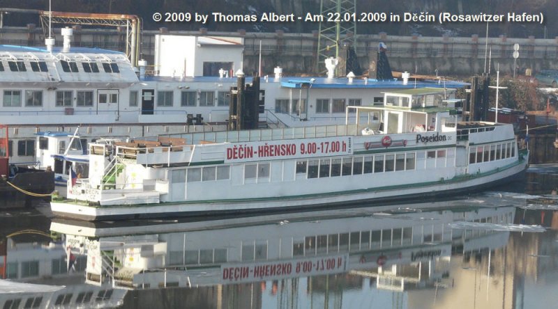 Weitere Fotos: "POSEIDON" (1960) - Das Steuerhaus mit der neuen Schiffsnummer aus Tschechien. An der Steuerhausscheibe die Angabe zu Länge und Breite des Schiffes.